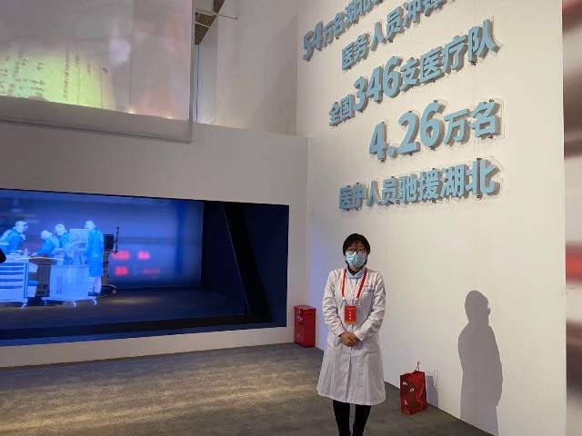 在湖北省武汉市武汉客厅展览现场,作为陕西省首批援鄂医疗队员,曾经奋战在抗击疫情一线她被一幅幅画面、一处实景为之感慨万千。她说,“既是为了铭记历史,也是为了启迪未来”。抗疫过程中,无数平民英雄医生命赴使命,用大爱护众生,彰显了抗击疫情的中国力量。伟大抗疫精神将激励我们更加自信团结、无惧任何困难和风险挑战,在实行中华民族伟大复兴的征程上披荆斩棘,昂首向前。
