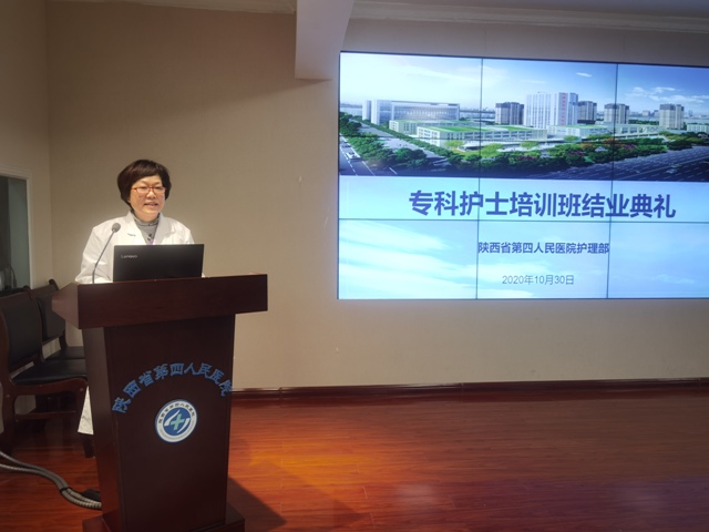 10月30日下午,陕西省第四人民医院专科护士培训班结业典礼圆满举行。业务院长刘彦君、聂书伟、护理部主任袁艳琦,以及专科护士培训班全体学员参加了此次活动。