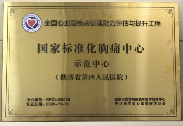 陕西省第四人民医院心血管专病中心建设工作得到院领导的高度重视和各相关部门科室的大力支持。省四院被授予CDQI国家标准化专病中心建设的国家标准化胸痛中心示范中心,以及房颤中心、心衰中心、高血压中心国家标准化建设单位,标志着我院心血管专病中心建设工作走上了标准化发展之路,其中国家标准化胸痛中心达到国家示范中心标准。医院将以此为契机,继续推进心血管专病中心建设工作,不断优化各中心救治管理流程,构建区域协同救治网络,扩大区域辐射面,带动区域基层中心建设,进一步提升对心血管疾病患者的救治服务能力,为人民群众的健康福祉保驾护航!