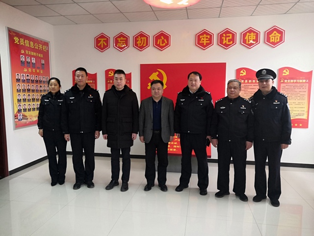 在幸福中路派出所,贾延院长与派出所所长张儒等公安干警亲切交谈沟通了近期的医疗安全保障、疫情常态化防控等情况,听取他们的建议。贾延代表医院对派出所近年来给予省四院的支持和帮助表示感谢,感谢派出所民警们对医院周围的治安保卫、维护医疗环境的稳定、疫情常态化防控防风险、护安全、保稳定、战疫情所做的贡献,展现出强烈的责任意识和担当意识,彰显了“立警为公,执法为民”,全心全意为人民服务的人民警察精神和宗旨。希望双方继续发挥优势,在共建中共进。派出所领导对医院领导的到来表示欢迎,对医院给予的关心和支持表示感谢,并简要介绍了派出所整体情况,表示继续维护群众的生命安全和身体健康、维护经济社会大局稳定。