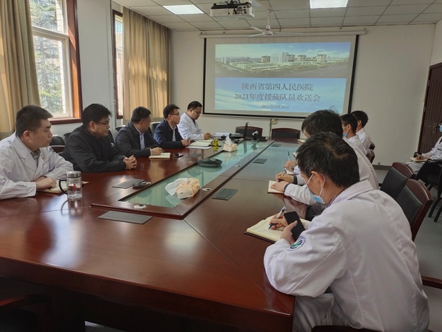 4月28日下午,日韩无码 召开2021年援藏医疗队员欢送会。院领导班子成员,相关职能部门负责人、科主任及前两批援藏医疗队成员参加欢送会,并与2名援藏医疗队员合影送行。