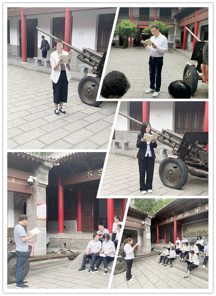 参观结束后,在支部书记带领下,大家面对党旗重温入党誓词。随后支部“以历史为教材,以现场为课堂”,开展集体学习活动。三名年轻党员分别讲述了革命历史故事,文物背后故事,革命人物故事,演讲者用心,听者认真。支部党员们还一一领读了《论中国共产党历史》部分篇章,共同学党史,悟思想。