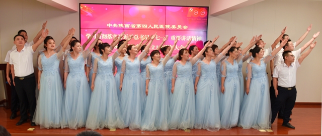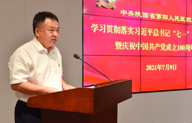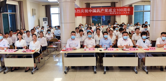 7月9日,省第四人民医院召开庆祝中国共产党成立100周年大会和认真学习贯彻落实习近平总书记“七一”重要讲话精神。省卫健委党组成员、副主任余立平出席活动并讲话,委法规处副处长余晴、院领导班子、“光荣在党50年”老党员代表、各党支部书记、中层干部护士长、党团员代表,共150余人参加会议。共同庆祝党的百年华诞。