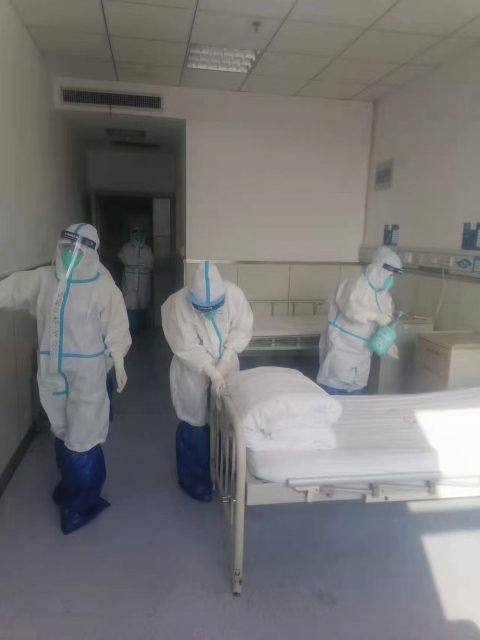 病区全体医护人员恪守医者初心,做好前期准备工作。护士立即清空科室,调整床位,更换被褥,打扫卫生,全方位消杀各个角落,准备物资,每个床位一根体温计,烧水壶等生活和防疫用品。确保新冠肺炎患者在本病区14天集中医学观察期的需求与安全,2022年1月10日迎来了第一批新型冠状肺炎治愈患者,预祝他们在这健康愉快的度过14天的集中医学观察期。