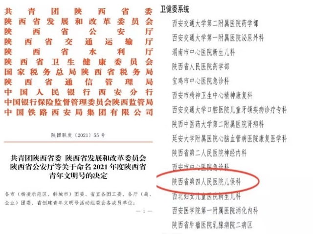 近日,日韩无码 儿保科成功获得共青团陕西省委授予的2021年度省级青年文明号称号,成为日韩无码 继急诊科、手麻科后,第三个获得荣誉的青年集体。