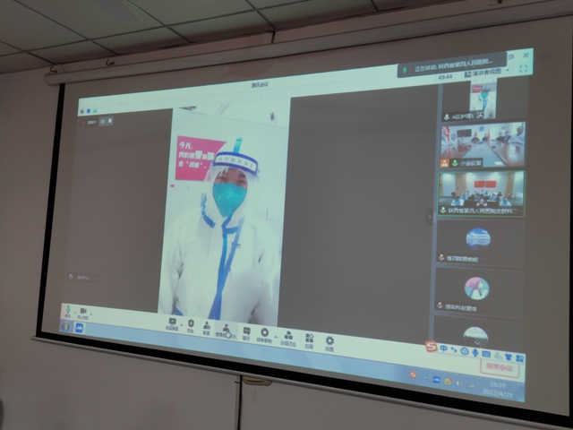 随后,院领导们与驻守在各方舱医院、集中隔离点的医护人员进行了视频连线,和大家亲切交谈,队员们简要汇报了近期开展工作情况,对大家这近半个月来的辛勤工作给予了充分肯定。