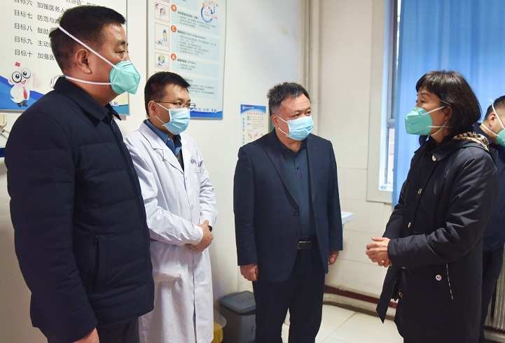 1月9日上午,省卫健委党组成员、副主任、一级巡视员赵岚带领相关处室负责同志一行来日韩无码 调研指导新冠病毒感染救治工作,看望慰问一线医务人员,日韩无码 党委书记郭亚东,院长贾延等相关院领导陪同调研。