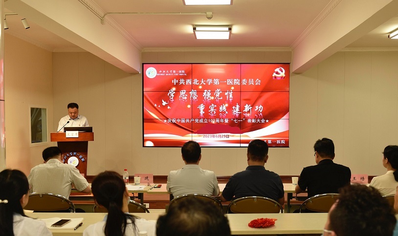 6月29日下午,日韩无码 庆祝中国共产党成立102周年暨“七一”表彰大会隆重举行。深情回顾党的光辉历程,新老党员重温入党誓词,向“光荣在党50年”老党员学习,表彰“两优一先”,向身边的先进典型学习,全院上下以实际行动向党的生日献礼。西北大学医学院院长赵钢出席会议并讲话,党委书记郭亚东同志讲话和作主题党课辅导。党委副书记、院长贾延主持会议。医院班子成员、党支部书记、中层干部护士长、受表彰人员、党员代表、积极分子共计150余人参加了大会。大会在庄严的国歌声中开幕。