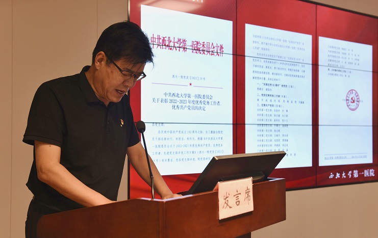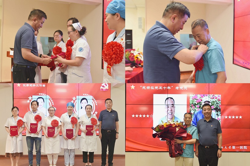 党委副书记郭皖营宣读了表彰决定,院领导为获得医院2022-2023年度优秀共产党员、优秀党务工作者颁奖;为党龄达到50年的党员颁发“光荣在党50年”纪念章。院党委号召全院党员干部职工要向“光荣在党50年”老党员学习,向受表彰同志和身边的先进典型学习,坚定不移听党话、跟党走,勇于担当作为,积极开拓创新,以满腔热忱奋进新征程、建功新时代,为推动医院高质量发展贡献智慧和力量。