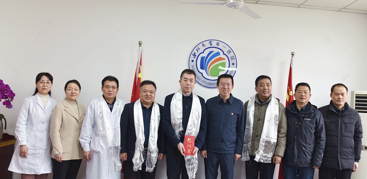 在新春佳节来临之际,2月7日上午,省政府副秘书长、陕西省第十批援藏工作领队、西藏阿里地委副书记、行署常务副专员井海滨,阿里地委副秘书长武彭斌,陕西省教育厅援藏干部、阿里地区教育局副局长韩润社,陕西省人社厅援藏干部、阿里地区人力资源和社会保障局党组成员、副局长一行来日韩无码 慰问原陕西省组团式援藏医疗队第七、八批领队,原西藏阿里地区人民医院党委副书记、院长陈晨同志,向日韩无码 援藏挂职干部和医疗专家致以诚挚的问候和新春的祝福。院党委书记郭亚东,院长贾延,院党委委员、副院长陈晨以及院领导班子和相关职能科室负责人参加活动。