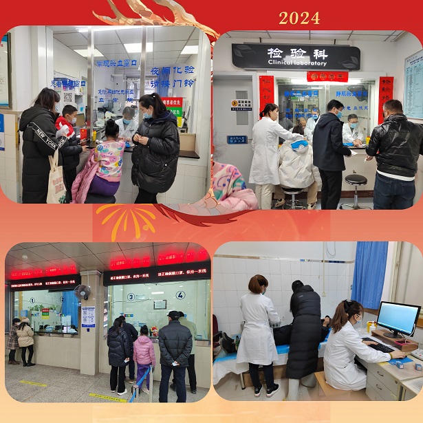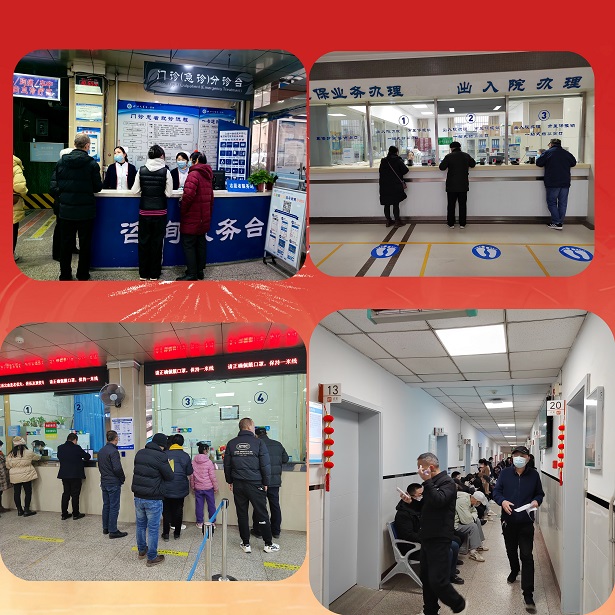 院党委节前提前统筹部署,扎实开展各项医疗救治工作全面开启门急诊不停诊,胸痛中心、卒中中心等急诊急救体系为生命开辟24小时“绿色通道”,各种手术不停歇,住院患者不影响,化验检查不耽误,互联网医院线上诊疗专家不缺席,后勤保障人员随即到,百姓点赞看病有“医”靠。2月10日至17日春节假日期间门诊不停诊,专家名医假日值班值守、正常出诊,采血窗口、CT/磁共振、急诊换药室、注射室等岗位“医”如既往坚守“医”线。门诊分诊、导医团队坚守在岗,医学检验、医学影像、心电图、超声检查、药房、医保、收费处等无节假日运行工作人员坚守保障用“敬业福”保障人民群众的“健康福”,获患者及家属满意点赞叫好。
