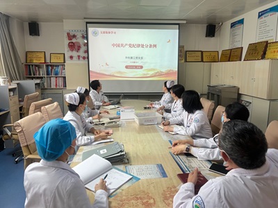 内科第一党支部在心内科办公室召开支部党员大会并结合“三会一课”,深入学习党纪学习教育相关文件,支部书记、心内科主任王选琦要求将党纪学习教育与巩固提升心内科省级重点专科内涵以及医疗服务质量提升相结合。会议要求,要结合实际制定学习计划,通过集体学习和自学相结合的方式,加强党纪知识的掌握,全体党员干部要做到学纪、知纪、明纪、守纪,同时,会议强调,要增强党纪学习教育的自觉性,切实将学习成果转化为科室发展的动力。