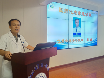 院长贾延向长期一直以来奋战在临床一线的医师们致以节日的祝福和崇高的的敬意。他表示,在全院的共同努力下,医院在医疗技术、服务质量、科研创新方面取得了新的进步。希望全院医务人员恪守公、诚、勤、朴的校训,践行艰苦创业、自强不息的西大精神, 弘扬救死扶伤的卫生职业精神,坚持党建引领,以强基础、固内涵、重运营的发展思路,以创建三级甲等医院为近期工作目标,不断提升医疗、教学、科研水平,为患者提供更加优质的医疗服务。