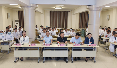 在大会议室举办岗前培训开班仪式。医院党委副书记、院长贾延、医院党委副书记潘君宇、副院长聂书伟、纪委书记王培、总会计师夏军以及党委办公室、医院办公室、人力资源部、医务部、护理部、感控科、门诊办、科教科、质控科、信息科等职能部门的负责人共60余人出席仪式