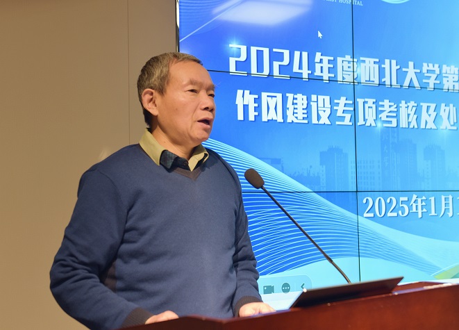 考评会上,学校机关党委正处级组织员刘景钱作动员讲话,就医院领导班子2024年度作风建设专项考核细则作了说明和提出了要求。