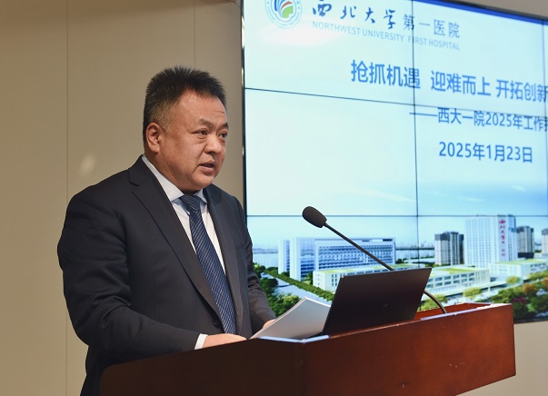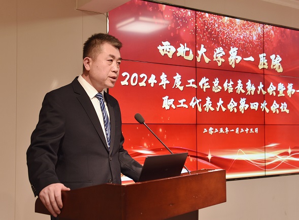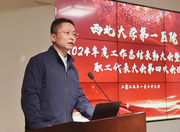院长贾延全面总结了医院2024年各方面工作取得的成绩,对过去一年全体医务人员辛勤奉献、实干担当表示感谢,对医院在党建工作、医疗质量、护理工作,以及教学科研协同发展等方面的成果进行了报告。结合2025年度医院发展目标,进一步部署了本年度重点工作任务。