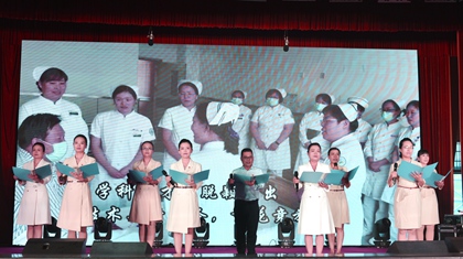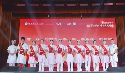 西北大学医学院院长赵钢总结讲话,代表学校向大家致以节日问候,也向受到表彰的护理团队和个人表示祝贺。第一医院划转西北大学以来,学校始终高度重视校院融合工作,给予持续性大力支持,落实学校十四次党代会精神。校党委明确提出创建三级甲等医院是当务之急,护理人员是这项工作的重要参与者,一定要主动学习,抓好护理队伍建设,强化优质护理服务,全面提升护理水平。提倡以德兴护、关爱生命。在即将迎来第一医院揭牌两周年之际,愿广大护士同志们继续努力,不负重托、不辱使命,主动站在医院发展的最前沿迎接挑战,再创佳绩!