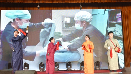 文艺汇演在架子鼓声中热烈开场,节目异彩纷呈,白衣天使们多才多艺,在节日的舞台绽放别样芳华。