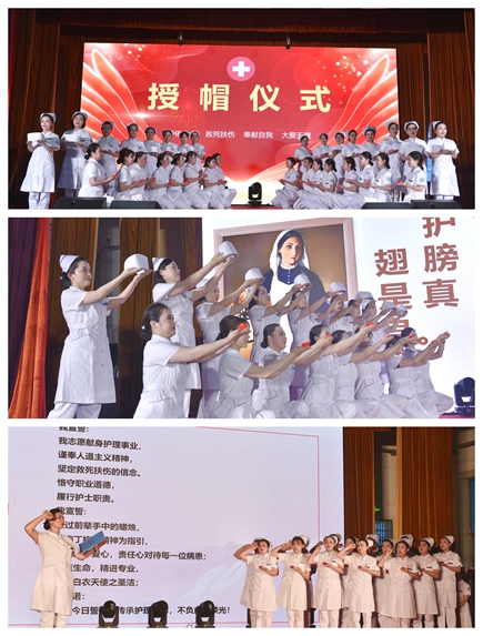 新护士授帽仪式在《感恩的心》旋律中展开,护理前辈与新护士们在烛光中微笑而立,躬身,授帽,宣誓,温情而庄重地完成护理使命的新一轮传承,也为本次活动画上温馨圆满的句号。