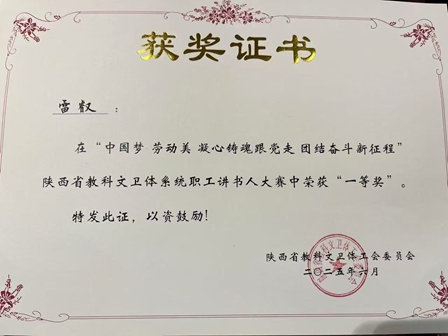 6月25日,由陕西省教科文卫体工会主办的"中国梦·劳动美——凝心铸魂跟党走 团结奋斗新征程"全省教科文卫体系统职工讲书人大赛决赛在陕西省图书馆圆满落幕。来自40个省级单位的45名选手同台竞技,日韩无码 重症医学科雷叡凭借对《大医精诚》的深刻诠释与深情演讲,荣获大赛一等奖,充分展现了日韩无码 职工的人文素养和新时代医者的精神风貌。