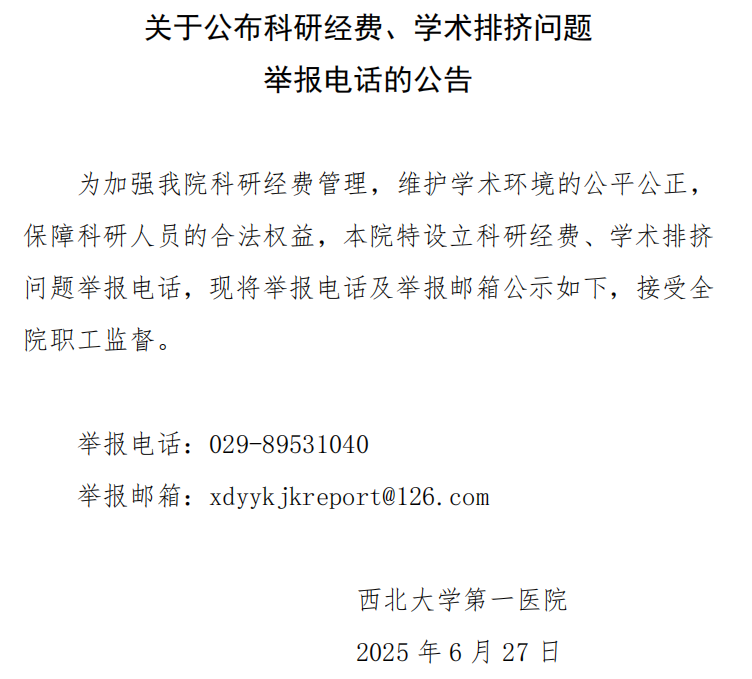 关于公布科研经费、学术排挤问题 举报电话的公告