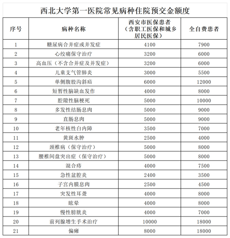 五、公示住院预交金为常规治疗标准,实际住院费用以出院结算为准,多退少补。
