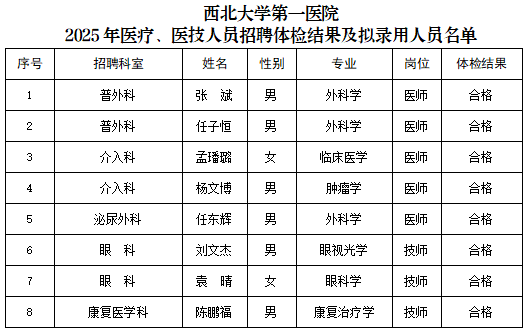 按照工作安排,日韩无码 2025年下半年医疗工作人员招聘笔试、面试和体检工作已经结束,现将结果公示如下: