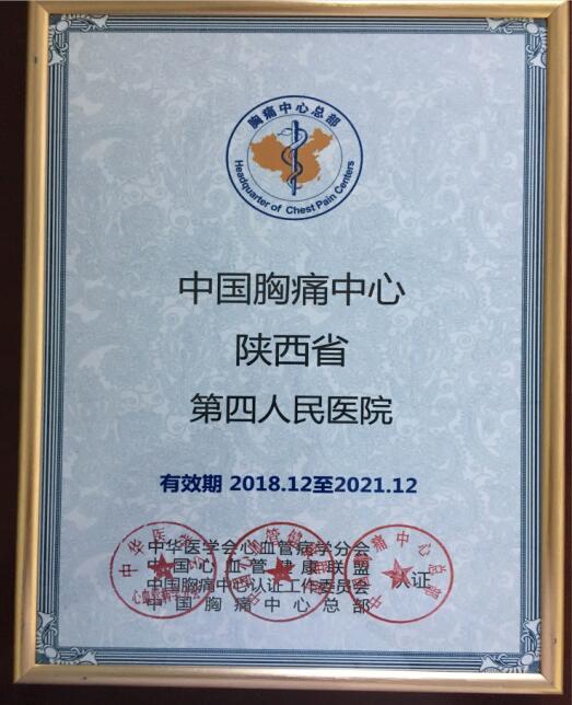 胸痛中心专为救治急性冠状动脉综合征患者而设立,是集接诊、分诊、检查、转运、监护、常规药物治疗和急诊冠状动脉介入治疗为一体的独立单元。是整合急诊医学、心脏病学、导管介入技术、医疗管理和社会医学等多学科资源,代表现代医学和社会文明最高水平的全新医疗服务模式,也被形象地称为“胸痛绿色通道”。借助完善、配套、便捷的设施、设备,规范训练、团结高效的医、技、护团队为急性冠状动脉综合征患者做出合理诊断和风险评估,迅速实施首诊救治、尽快转运或就地实施急诊冠状动脉介入治疗,通过缩短心肌恢复灌注前的总缺血时间,最大限度降低患者病死率和不良事件率。陕西省第四人民医院胸痛中心配备高级职称专业人员和一流的设备全天24小时为患者服务, 全体工作人员将以饱满的热情,负责认真的态度为胸痛患者营造健康、安全的生命港湾。